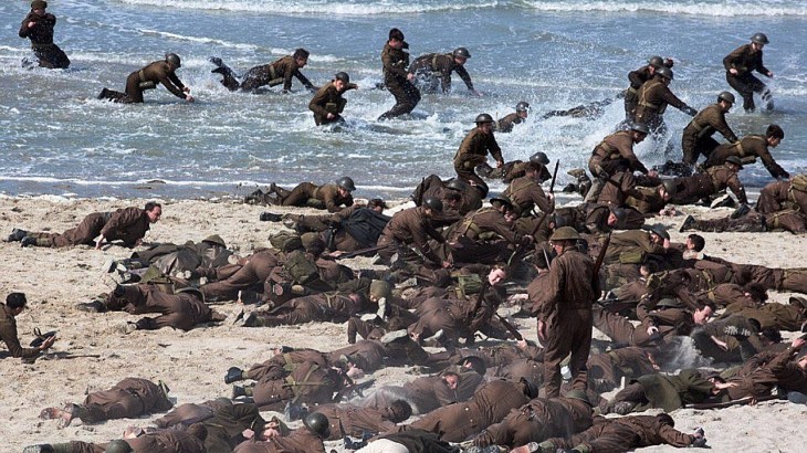 En la historia del mar, que se desarrolla a lo largo de un día, hay un barco con civiles a bordo – un padre, su hijo y un amigo – que se encuentra al rescate de los soldados. En la playa hay tres soldados que esperan que algún barco venga a buscarlos y así abandonar esa zona de peligro cuanto antes. Esta línea narrativa se extiende a través de una semana. Y en el aire hay dos pilotos de los aliados atravesando los cielos mientras persiguen y son perseguidos por aviones alemanes. Esta parte abarca una hora. A medida que los tres segmentos se entrecruzan se hace visible un panorama general más que alarmante. Porque dada las condiciones adversas para los aliados parecería que no va a quedar ni uno solo vivo.